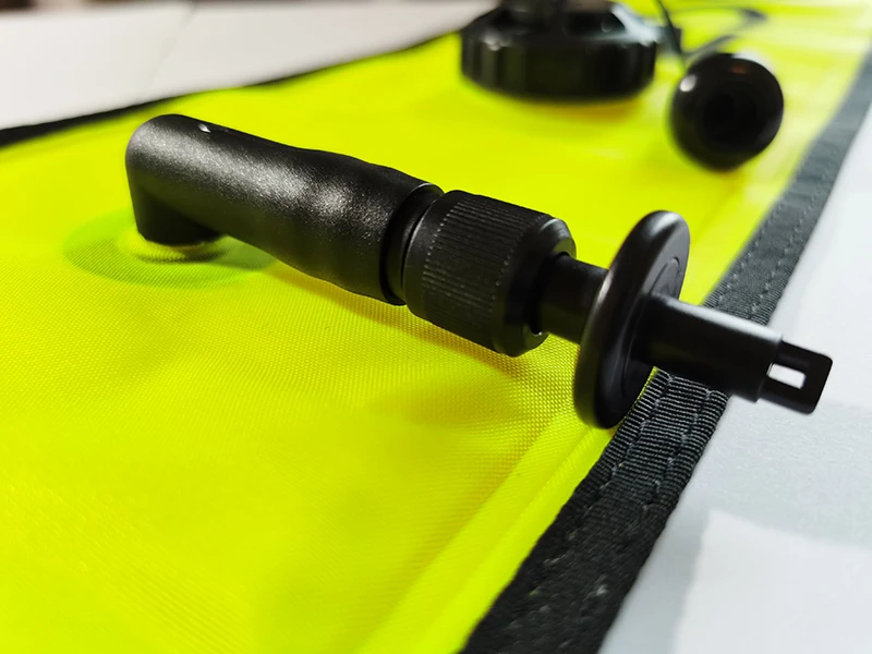 There are 316 stainless steel D ring on bottom, which are easy to attach it on your BCD pocket or clip.