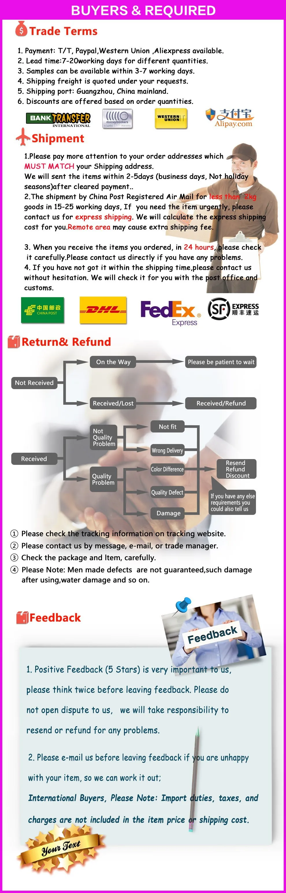 T/T,PAYPAL,WESTERN UNION,MONEY GRAM,ect |